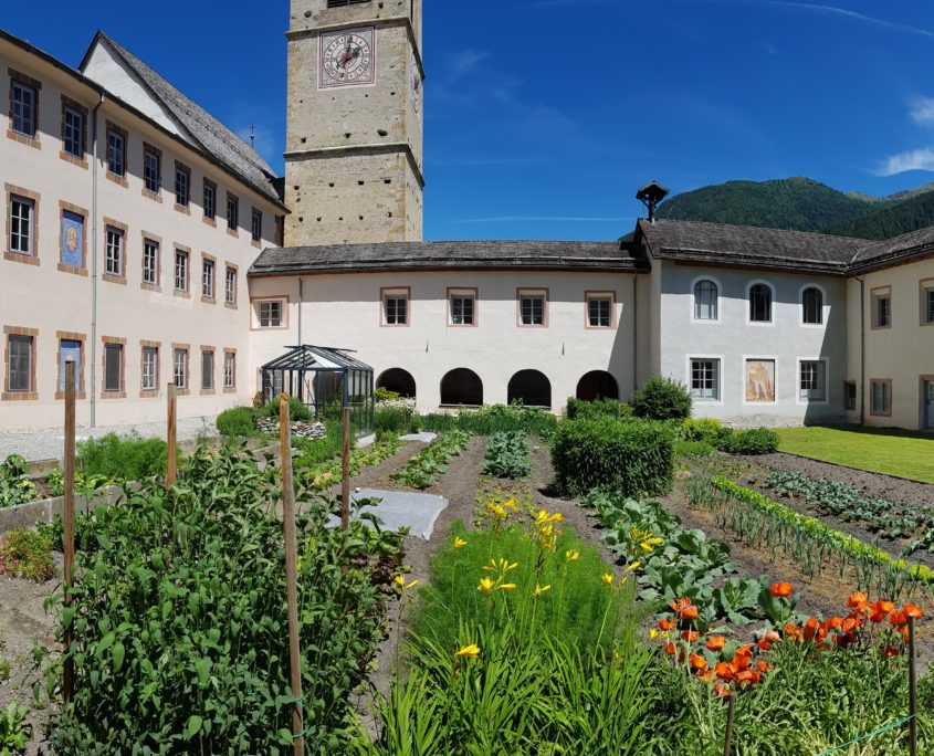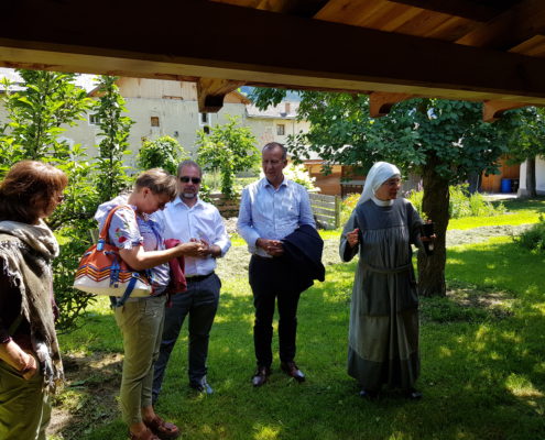 Das Thema „Gesundheitsversorgung früher – heute“ stand im Zentrum des nachmittäglichen Rahmenprogramms. Bei einer Führung durch den Kräutergarten des Klosters konnten sich die Teilnehmerinnen und Teilnehmer selber ein Bild der heimischen Heilkräuter und Gewürze machen, welche bis heute angebaut und auch verwendet werden.